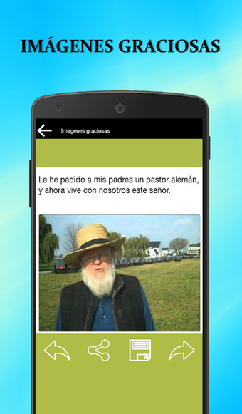 Imágenes Graciosas är en fantastisk app med bilder och skämt för Android-telefoner. Med denna applikation kan du ladda ner dina favoritbilder från vår samling. Vi har också en möjlighet att ladda upp dem till Facebook, Twitter och andra sociala nätverk.
